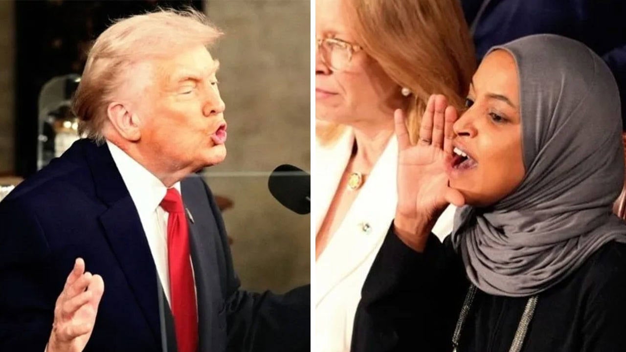Trump’ın sözlerine Kongre’nin Müslüman üyelerinden Ilhan Omar sert şekilde karşılık vererek, “Amerikalıları öldürdünüz, asıl siz utanmalısınız.” dedi. Trump ve Omar arasında karşılıklı olarak “Kendinizden utanmalısınız.” sözleri tekrarlandı. Salonda bazı Demokrat üyeler de Trump’a tepki gösterdi.